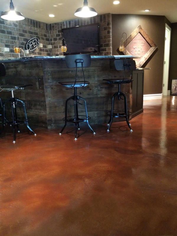SunDye offers a contemporary aesthetic compared to the earthy tones typical of acid staining.