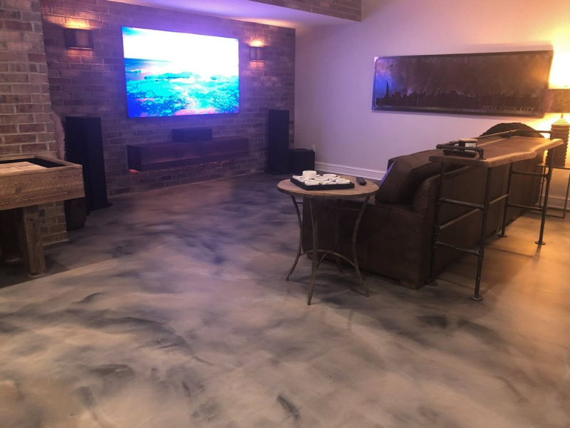 The benefits of concrete or epoxy rather than other commonly used flooring materials are numerous. For example, you won’t have the hard-to-clean grout lines that you get with tile. Concrete and epoxy floors are also easy to keep clean, so they don’t attract and house dust and other allergens like carpet tends to do. Unlike wood, concrete and epoxy floors can’t get damaged from termites. And since are coatings are non-porous, it’s easy to wipe up spills—preventing warping and other types of damage caused by water and moisture.