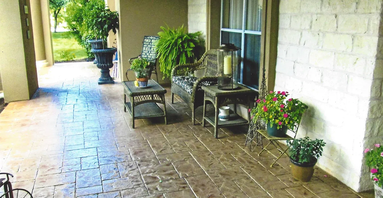 - If you’d like to redesign your surface, we can create any design you’d like by applying a coating to the entire surface and then stamping or staining it.