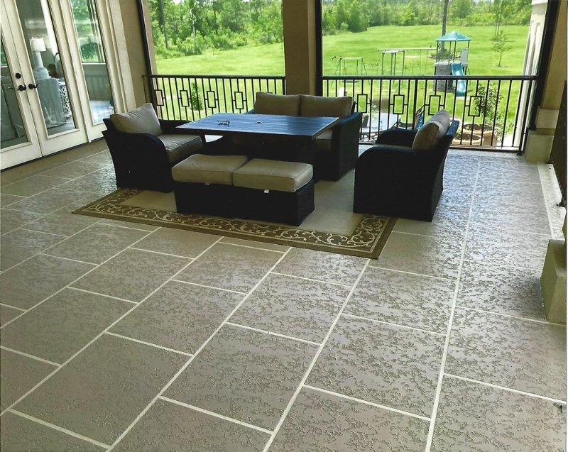 Creating the look of pavers with a concrete coating rather than actual pavers is beneficial for several reasons. For example, unlike pavers, which can move and settle if they’re not properly installed, concrete will remain in place for many years to come. Additionally, you don’t have to go through the trouble of finding stones with symmetrical shapes and similar color tones to fit your patio space. It’s also less expensive to create the look through a coating than to pay someone to hand-lay each piece.